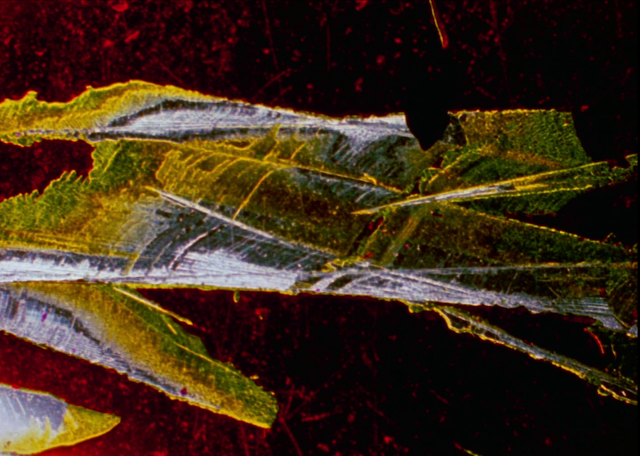 El resultado, como se puede ver en las capturas que anteceden a estas líneas, no es un mero registro aséptico de ese proceso de descomposición inducida. Al ser proyectado a gran velocidad, esas manchas informes cobran vida repentina, se asemejan a toda una fauna que se retorciese y debatiese, combatiese y pugnase, se devorase entre sí, intentase sobrevivir a su cercana desaparición. Un hervidero incesante, de formas que surgen y desaparecen, se mezclan y se separan, atrapando sin posibilidad de escape la atención del espectador, quien puede acabar, irremediablemente, en un estado de trance arrebatador.