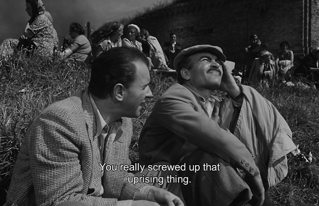Estos prisioneros pertenecen, por tanto, a un pasado ya desvanecido. No tienen hogar al que retornar y aunque quisieran reanudar sus vidas, probablemente serían considerados como enemigos del nuevo régimen, en su calidad de símbolos del orden anterior. Sólo les queda engañarse, durante el breve tiempo que aún permanezcan encerrados, reproducir allí la jerarquía, los rituales, las divisiones y separaciones que daban sentido a su mundo.