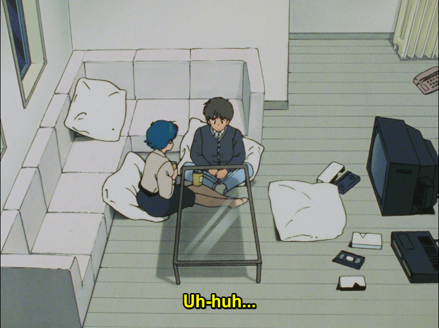 Hay otras virtudes que, me temo, sólo sabrán apreciar quienes crecieron con esas series o a quienes les sirvieron de puerta de entrada al mundo del anime. En primer lugar, la renuncia a un fotorrealismo que reemplace a la propia realidad. Los entornos, los fondos y los decorados en los que se mueven los personajes, no ocultan en ningún instante su naturaleza de dibujado. Son acuarelas y dejan ver en su plasmación final los trazos del pincel. Incluso su inevitable imprecisión o su estado inacabado. Asimismo, las limitaciones de presupuesto llevaron a adoptar en esas series unas estrategias, ya desaparecidas, que llamaban la atención por contraste con la exuberante animación occidental. Una y otra vez, las series de anime introducían excursos meditativos. Secciones casi estáticas que servían para reflejar la confusión, el desánimo, la duda, las vacilaciones de los personajes. Sensaciones subrayadas por la ausencia de músicas intrusivas, de esas que pretenden guiarte y dictarte, pero donde cobraban especial importancia los sonidos ambiente: el canto de los pájaros, el sonido de un timbre, el correr del agua que cae de un grifo, el rebullir de alguien en otra habitación.